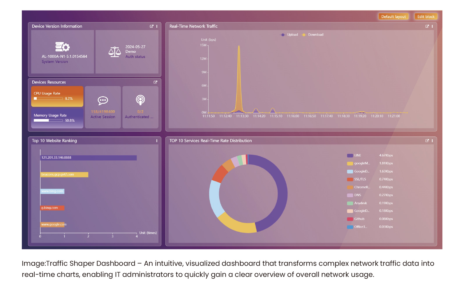 When combined with user identity recognition and authentication mechanisms, Traffic Shaper enables more effective bandwidth control and traffic optimization, ensuring priority for critical applications while significantly reducing the operational and response burden on IT teams.
